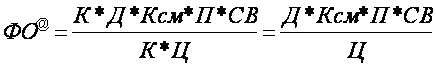 Факторную модель фондоотдачи оборудования можно расширить, если время работы единицы оборудования представить в виде произведения количества отработанных дней (Д) , коэффициента сменности (Ксм) и средней продолжительности смены.