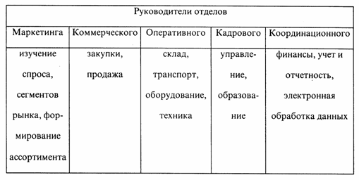 000 «Орикс» являет собой тип предприятия, где подразделения формируются по ассортименту. Функциональный отдел, занимающийся закупками и продажей, далее подразделяется по ассортименту (товарным группам). Сфера ответственности разделена в соответствии с этими товарнымигруппами (например, овощи и фрукты, молочные продукты, мясные и колбасные изделия, мебель, бытовая техника и т.п.). Таким образом в фирме «Орикс» координируется закупка и продажа товаров по каждой товарной группе.