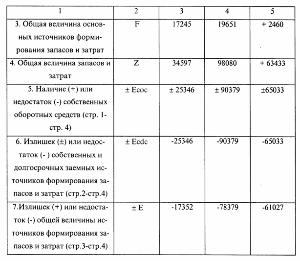 Обобщающим показателем финансовой устойчивости служит излишек или недостаток источников средств формирования запасов и затрат. Он рассчитывается как разница между величиной источников средств и величиной запасов и затрат.