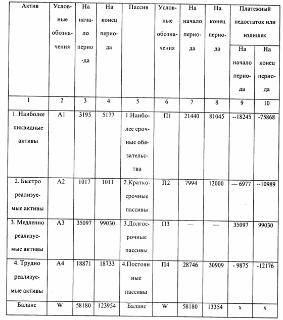 Изложенный анализ ликвидности баланса является приближенным, т.к. соответствие степени ликвидности активов и сроков погашения обязательств в пассиве намечено ориентировочно.