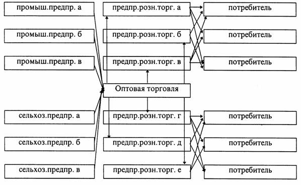 С одной стороны, существует товарный поток от производителей через торговлю к потребителям, с другой стороны — поток информации от потребителя через торговлю к производителю. В итоге должна быть достигнута согласованность обоих потоков. В этом процессе торговля играет решающую роль (рис. 1).