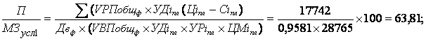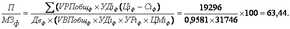 Одним из показателей эффективности использования материальных ресурсов является прибыль на гривну материальных затрат. Повышение его уровня положительно характеризует работу предприятия. В процессе анализа необходимо изучить динамику данного показателя, выполнение плана по его уровню, провести межхозяйственные сравнения и установить факторы изменения его величины. Для этого можно использовать следующую факторную модель: