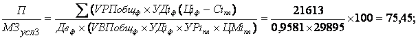 при фактическом уровне рентабельности продукции и плановой материалоемкости |