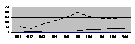 Обычно развивающиеся страны, к которым относится Беларусь, отличаются низким уровнем занятости и высокой безработицей. У нас же после 1996 г. все складывалось наоборот. Прежде всего ограниченные возможности открытия новых рабочих мест в развивающихся странах связаны с низкой способностью этих стран к накоплению. В свою очередь, только высокая доля накоплений ведет к быстрому поглощению резерва рабочей силы. При отсутствии прямых иностранных инвестиций проблема накопления в нашей стране решалась через эмиссию, прямое кредитование Нацбанком. При этом кредиты носили целевой характер и предоставлялись по льготным процентным ставкам. Создавалась иллюзия избытка денежных средств у организаций и населения, что негативно сказывалось на валютном курсе и рынке труда.