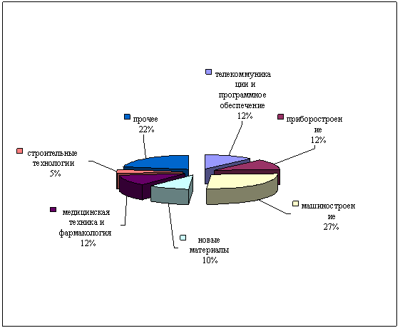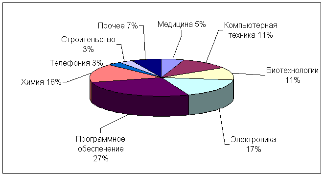 Диаграмма 3 – Распределение компаний по отраслям на пятой венчурной ярмарке, 7-8 октября, 2004, Санкт-Петербург