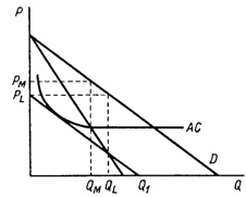 Кривая АС представляет средние затраты на выпуск всех участников картельного соглашения. Для предотвращения появления новых конкурентов вместо сочетания Рм,0м, соответствующего точке Курно, нужно выбрать комбинацию pl,ql. Тогда остаточный (неудовлетворенный) спрос на данном рынке будет представлен отрезком pl , Q1, который целиком расположен ниже кривой средних затрат. Поэтому если потенциальные конкуренты имеют одинаковую с членами картеля технологию, то производить данное благо им не выгодно.