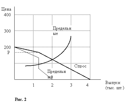 Легко понять, как фирмы втягиваются в эту войну. Поскольку каждый продавец думает, что другой не будет реагировать на его понижение цены, то у каждого из них есть искушение увеличить продажи, сокращая цены. Снижая цену ниже цены своего конкурента, каждый продавец может захватить весь рынок - или он так думает - и может тем самым увеличить прибыль. Но конкурент отвечает понижением цены. Война цен продолжается до тех пор, пока цена не падает до уровня средних издержек. В равновесии оба продавца назначают одну и ту же цену P=AC=MC. Общий рыночный выпуск такой же, какой имел бы место при совершенной конкуренции. Предполагая, что каждая фирма всегда поддерживает свою текущую цену, другая фирма всегда может увеличить прибыль, требуя на 1 рубль меньше, чем ее соперница. Конечно, другая фирма не сохранит прежнюю цену, т.к. она осознает, что может получить большую прибыль, требуя на 1 копейку меньше конкурента.