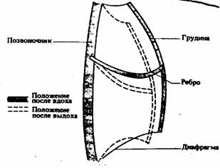 (Схематическое изображение грудной клетки, какие движения совершаются при дыхании.) |