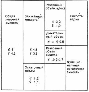 Рис. 6 Распределение объема и емкости легких у взрослых.