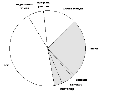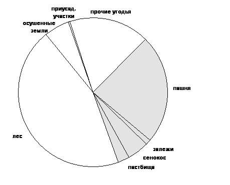 Рис. 1.1 Круговая диаграмма земельных угодий СХПК «Рассвет» в 1994 г.
