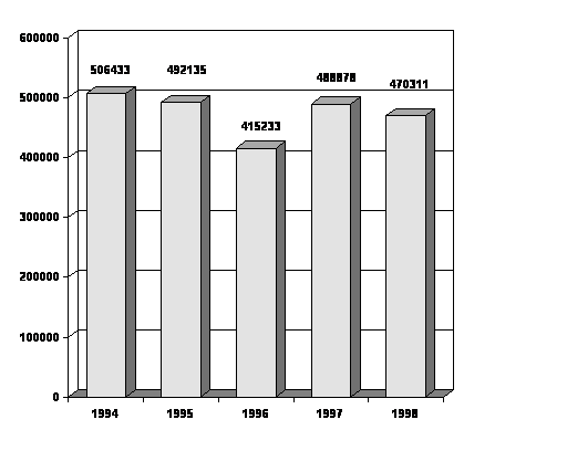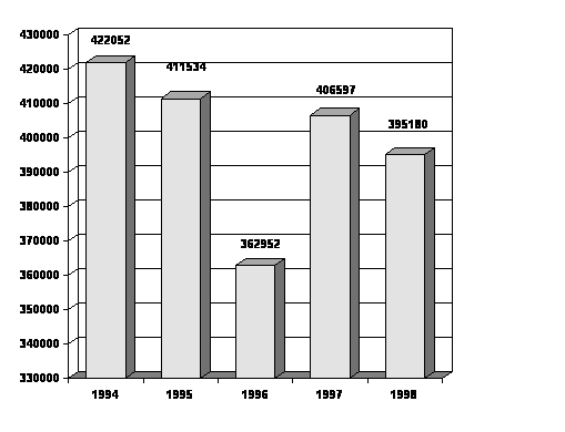 Приведенные цифры свидетельствуют о том, что по всем показателям, кроме стоимости основных производственных фондов и стоимости валовой продукции (по себестоимости), произошло снижение их размера, что свидетельствует о сокращении производства по сравнению с базисным 1994 годом. Повышение стоимости основных производственных фондов вызвано частотой их переоценки, что объясняется инфляционными процессами в стране.