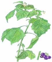 Паслен черный - однолетнее травянистое растение 15-70 см высотой. Стебель прямостоячий ветвистый, вверху несколько сплюснутый. Листья черешковые, яйцевидные, заостренные, цельнокрайные или выемчато-угловатые. Цветки мелкие, белые, в ложных зонтиках на поникающих цветоножках. Плоды - шаровидные ягоды, черные, изредка зеленые. Цветет летом и осенью.