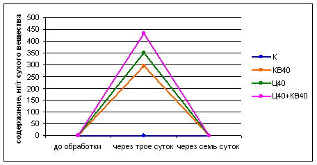 Уменьшение содержания ИУК через трое суток после обработки черенков крезивалом, обладающим ауксиновой активностью, может быть связано с переводом избытка ауксинов в связанные формы. Известно также, что обработка растений ауксинами приводит к усилению биосинтеза этилена, что вызывает накопление абсцизовой кислоты или активацию ее синтеза (Муромцев Г.С. и др., 1987). Проявляется каскадность в действии фитогормонов, когда один фитогормон запускает синтез другого. После того, как концентрация абсцизовой кислоты возрастает, последняя способна активно воздействовать на скорость образования этилена и высвобождение связанной ИУК. Через семь дней восстанавливается уровень ауксинов и увеличивается содержание ЦТК в черенках по сравнению с начальным значением.