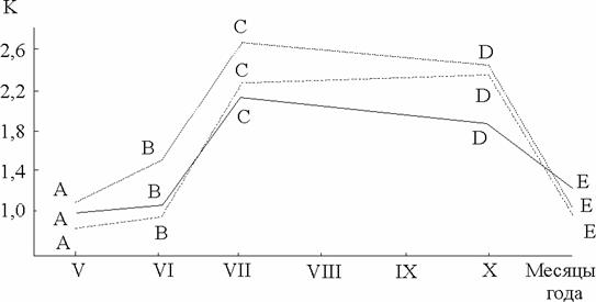 Рис. 4. Динамика коэффициента утяжеления почвы