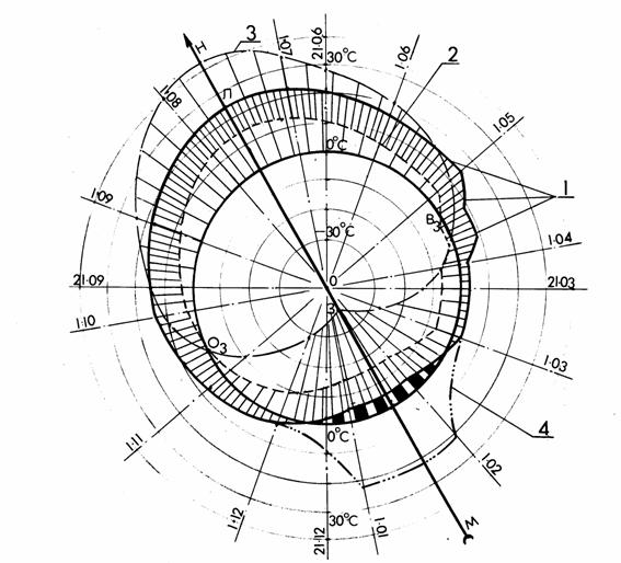 ) заморозков делят климат центральной части на две равные угловые апертуры. Максимумы температурных возмущений климата района летом и зимой принадлежат одному и тому же вектору циклограммы