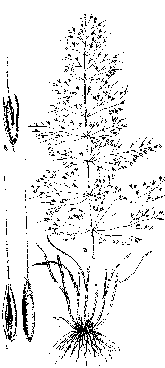 В первый год жизни развивает куст прикорневых листьев и сильно разветвлённый мочковатый корень. На второй год рано весной от узла кущения появляется несколько стеблевых побегов, достигающих высоты 20 – 100 см. Утолщённые узлы стебля прикрывают неширокие линейные листья. Соцветие – метёлка с большим количеством мелких колосков. На растении созревает до 16 тыс. зерновок. Всхожесть их сразу невысокая. При заделке глубже 5 см они не прорастают, но жизнеспособность сохраняют до 6 – 7 лет.