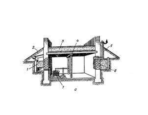 Вентиляция заглубленных укрытий вместимостью до 50 человек осуществляется естественным проветриванием через приточный и вытяжной короба. Короба могут быть из досок или в виде асбестоцементных, керамических или металлических труб; внутреннее