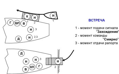 ПРИМЕРНЫЕ СХЕМЫ РАСПОЛОЖЕНИЯ ЛИЦ ДЕЖУРНОЙ И ВАХТЕННОЙ СЛУЖБ ПРИ ВСТРЕЧЕ И ПРОВОДАХ НАЧАЛЬНИКОВ