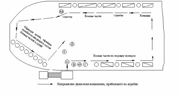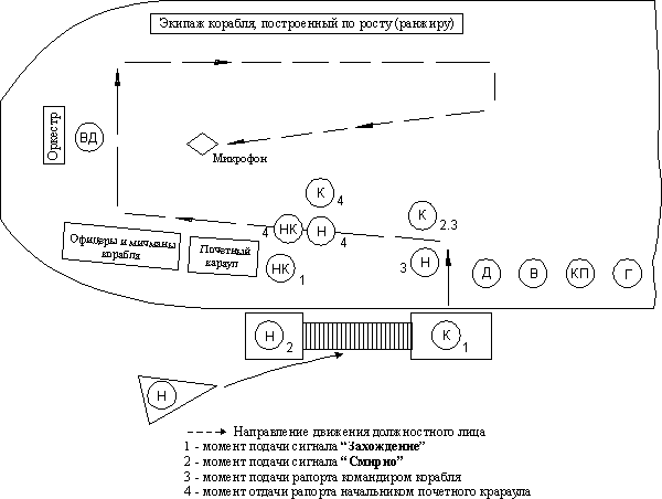 1. Если начальника встречает (провожает) только дежурный по кораблю или вах-тенный офицер, он занимает место командира корабля. В остальном порядок встречи (проводов) сохраняется.