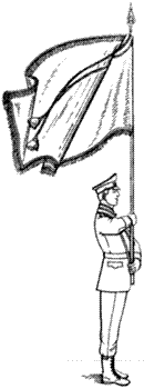 208. Приказом по части к Боевому Знамени назначаются знаменщик и два ассистента из сержантов, прапорщиков или офицеров, преимущественно из числа награжденных орденами и медалями и отличников боевой подготовки. Кроме того, для сопровождения Боевого Знамени при выносе его к полку и относе к месту хранения приказом по части назначается знаменный взвод. При следовании знаменного взвода к месту хранения Боевого Знамени при нем должны находиться знаменщик, ассистенты и сигналист-барабанщик. При переносе Боевого Знамени знаменщик и ассистенты должны иметь перевязь (приложение 6). К части Боевое Знамя всегда выносится развернутым. При передвижении на значительное расстояние Боевое Знамя переносится (перевозится) в чехле.