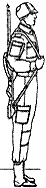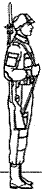 44. Карабин из положения от ноги в положение «на плечо» берется только с примкнутым штыком по команде «На пле-ЧО» в два приема: первый прием — правой рукой, поднимая и поворачивая карабин затвором вперед, перенести его отвесно около тела к левому боку и одновременно перехватить кистью правой руки за верхнюю часть цевья и ствольной накладки, в то же время подать кисть левой руки несколько вперед и поставить карабин прикладом на ладонь левой руки так, чтобы затыльник приклада лежал на ладони, большой палец находился спереди, а остальные пальцы были прижаты к левой стороне приклада; карабин держать отвесно в вытянутой руке против левого плеча, прикладом касаясь левой ноги; локоть правой руки — на высоте плеча (рис. 9, а); |
