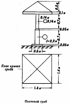 Постовой гриб окрашивается под цвет охраняемого объекта или под цвет окружающей местности.