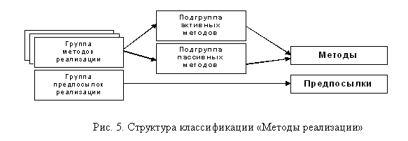 Методы реализации можно разделить на группы по способам реализации (рис. 5.). При этом необходимо учитывать, что само понятие «метод», применимо только при рассмотрении реализации угроз антропогенными источниками. Для техногенных и стихийных источников, это понятие трансформируется в понятие «предпосылка».