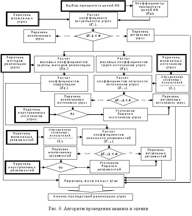 Сам подход к анализу и оценке состояния безопасности информации основывается на вычислении весовых коэффициентов опасности для источников угроз и уязвимостей, сравнения этих коэффициентов с заранее заданным критерием и последовательном сокращении (исключении) полного перечня возможных источников угроз и уязвимостей до минимально актуального для конкретного объекта.