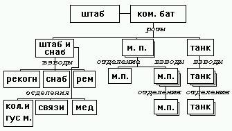 Смешанный мотопехотный батальон мотопехотной бригады батальоны (рис.1)организационно состоит из штаба, роты танковой и снабжения, двух мотопехотных рот на БМП “Мардер” и танковой роты.
