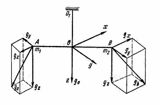 Напишем уравнение равновесия: τ(θ – θ0)+MZ =0 где τ – крутильная жёсткость нити OO1, θ – θ0 – угол закручивания нити относительно положения равновесия коромысла в однородном поле MZ – момент внешних сил относительно оси z. Далее по известным формулам получаем основное уравнение гравитационного вариометра