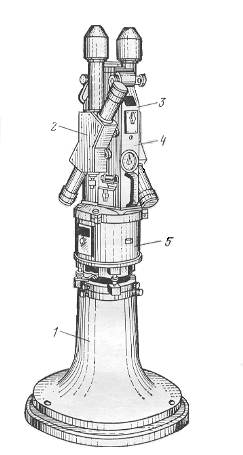 Рис.5 Вариометр S-20 (ВГ-1) Рис. 6 Схема оптической 1- подставка, 2- коробка с системы вариометра ВГ-1 крутильной системой, 3- коробка с оптической системой, 4- верхняя часть, 5- средняя часть