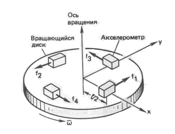рис. 7 Принцип вращающегося гравитационного градиентометра