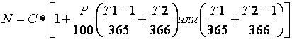 Т1 - часть срока Т, приходящаяся на календарный год с количеством дней 365;