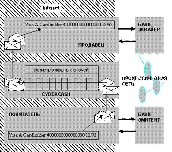 Рис. 2 Схема расчетов с использованием "закрытой" процедуры передачи данных о кредитной карточке