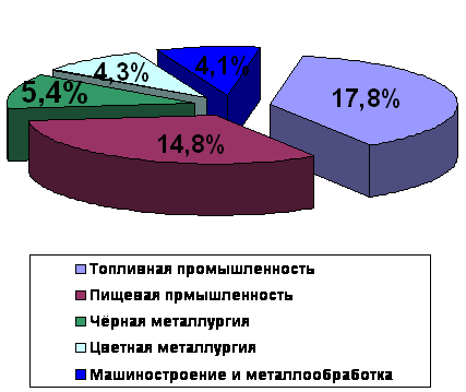 По объему привлечённых инвестиций лидируют сфера управления, топливная и пищевая промышленность, торговля и общественное питание, машиностроение, металлообрабатывающая промышленность, а также транспорт, связь, лесная, деревообрабатывающая и целлюлозно-бумажная промышленность, цветная металлургия, химическая и нефтехимическая промышленность.