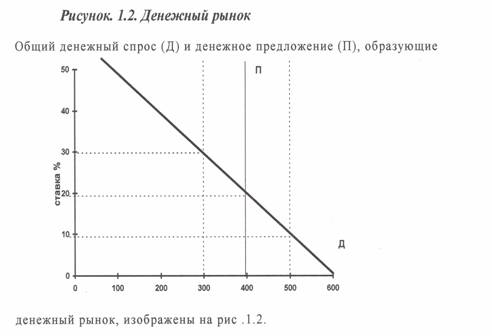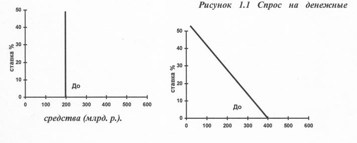 На рис. 1.1.а спрос на деньги для обращения изображен вертикальным отрезком ДО, поскольку он не зависит от процентной ставки, а только от уровня номинального ВНП.