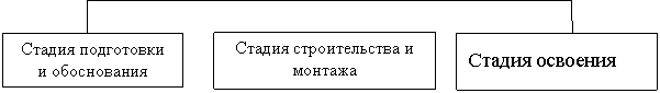 Процесс формирования и использования инвестиционных ресурсов охватывает определенный период, который принято называть инвестиционным циклом. Если рассматривать реальные инвестиции, то он включает следующие этапы: научные разработки; проектирование; строительство; освоение. Его можно представить следующей схемой (схема 2).