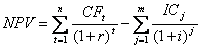 Если проект предполагает не разовую инвестицию, а последовательное инвестирование финансовых ресурсов в течение m лет, то формула для расчета NPV модифицируется следующим образом: