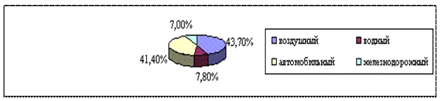 Рис. 1 Структура использования туристами различных видов транспорта