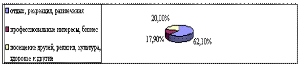 Показательными являются изменения в туристских поездках по цели и способу прибытия (виду транспорта). Цели туризма обычно разбивают на три группы: