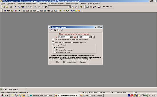 Рис. 13. Диалоговое окно «Кассовая книга».