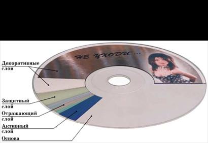 По своему устройству диск CD-R (заготовка для записи), также как и его «штампованный» собрат, напоминает слоёный пирог (рис. 4) и отличается только наличием активного (регистрирующего) слоя. Для записи информации служит активный слой. Однако качественные характеристики CD-R определяются всеми слоями. Поэтому давайте просто рассмотрим CD-R последовательно, слой за слоем.