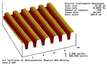 Трёхмерное изображение поверхности основы CD-R, построенное по результатам измерений, также выполненных в лаборатории атомно-силовой микроскопии Института физики полупроводников Национальной академии наук Украины, приведено на рис. 5.
