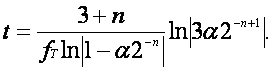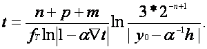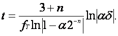 характера зависимости d = f(n) и определения формулы погрешности установившегося значения переходной характеристики ЦНП воспользуемся тем обстоятельством, что методическая погрешность стационарного состояния равна нулю и, следовательно, в качестве погрешности d в выражении (57) следует использовать только погрешность квантования. Более того, в качестве погрешности можно применять соотношение d=3*2-n+1 и считать, что формула, определяющая зависимость длительности переходного процесса в ЦНП с выходными одноразрядными приращениями в функции от числа