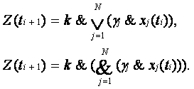 Иными словами, изменяя величину порога Qп при gjÎ{0, 1} и k = 1, будем менять вид логической функции Z(ti+1). Если же kÎ{0, 1}, то функции (25), (26) принимают вид