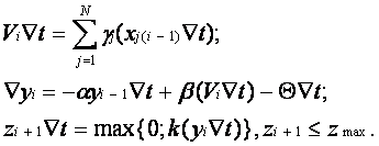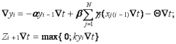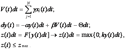 Для построения НЭ на базе цифровых интеграторов и сумматоров используем математическую модель информационных процессов в нейроне, предварительно представив ее в дифференциальной форме: