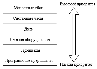 теты в соответствии с очередностью обработки прерываний. В процессе обработки прерываний ядро учитывает их приоритеты и блокирует обслуживание прерывания с низким приоритетом на время обработки прерывания с более высоким приорите-том.