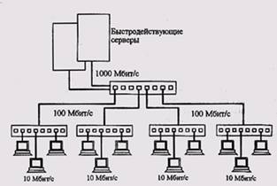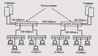 Рис. 5.22. Использование сети Gigabit Ethernet для подключения быстродействующих серверов
