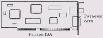 Сетевые адаптеры (они же контроллеры, карты, платы, интерфейсы, NIC -Network Interface Card) - это основная часть аппаратуры локальной сети, без которой сеть невозможна. Назначение сетевого адаптера - сопряжение компьютера (или другого абонента) с сетью, то есть обеспечение обмена информацией между компьютером и каналом связи в соответствии с принятыми правилами обмена. Именно они выполняют функции нижних уровней модели OSI. Как правило, сетевые адаптеры выполняются в виде платы, вставляемой в слоты расширения системной магистрали (шины) компьютера (чаще всего ISA или PCI). Плата сетевого адаптера обычно имеет также один или несколько внешних разъемов для подключения к ней кабеля сети.