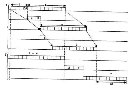 Рис. 4.25. Экономия времени при конвейерной обработке кадра: а - конвейерная обработка; б - обычная обработка с полной буферизацией